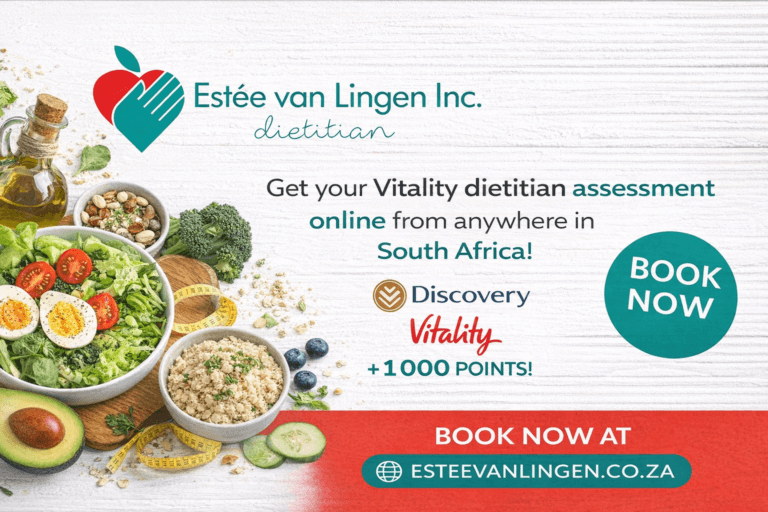 Looking for an easy, effective way to boost your Discovery Vitality points without travelling or disrupting your routine? Our online vitality dietitian assessments are available anywhere in South Africa, making it simple to book a professional consultation from the comfort of your home. Whether your goal is improving energy levels, supporting weight management, or earning +1000 Vitality points, you’ll receive personalised nutrition guidance tailored to your lifestyle. With flexible online appointments and expert support, boosting your vitality has never been more convenient, accessible, or sustainable.
